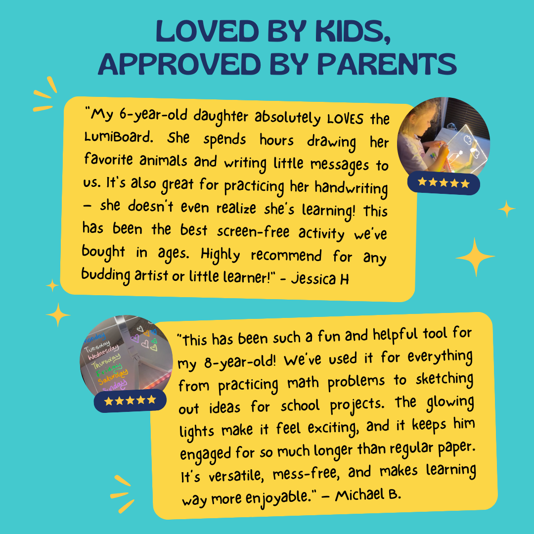 Watch their little faces light up as their drawings magically glow. No apps, no screens – just pure, mess-free creativity that keeps them entertained for hours.